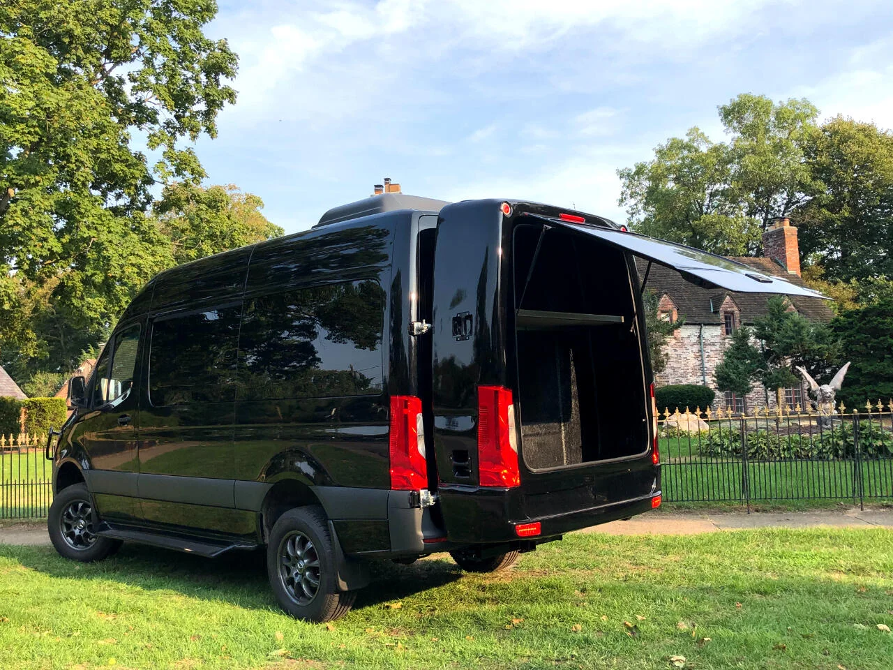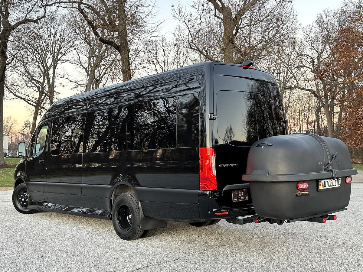 Moderately Increase the storage of your Luxury Mercedes-Benz Sprinter with one of Auto Elite’s Hitch Mounted Trunks. This trunk extension can be operated by one person. Extend the rails of the Hitch Mounted Trunk to access the rear Sprinter Chassis Doors and your original trunk. View details under Sprinter Upgrades on our website.