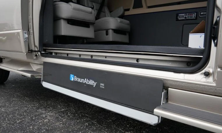 Auto Elite can make any luxury sprinter van model wheelchair accessible by installing the BraunAbility Under Vehicle Lift. This disability lift is discreetly installed underneath the passenger side entry door, preserving the look of the vehicle when not in use. Upon engaging the Mercedes-Benz Sprinter parking break, the lift can be activated to assist loading and unloading of wheelchair passengers. The lift controls are Hand Held.