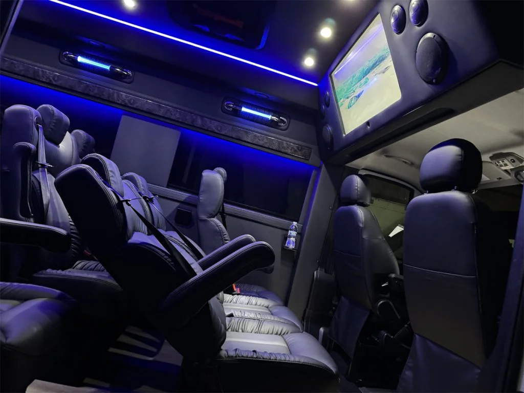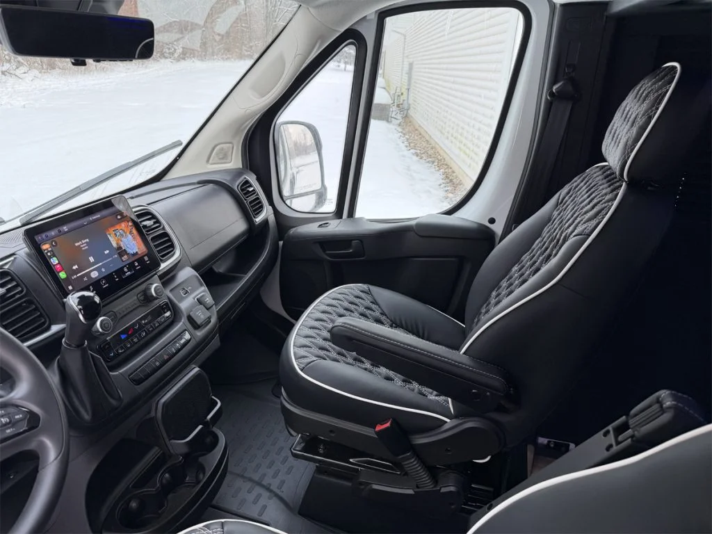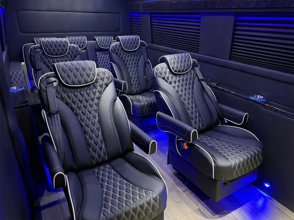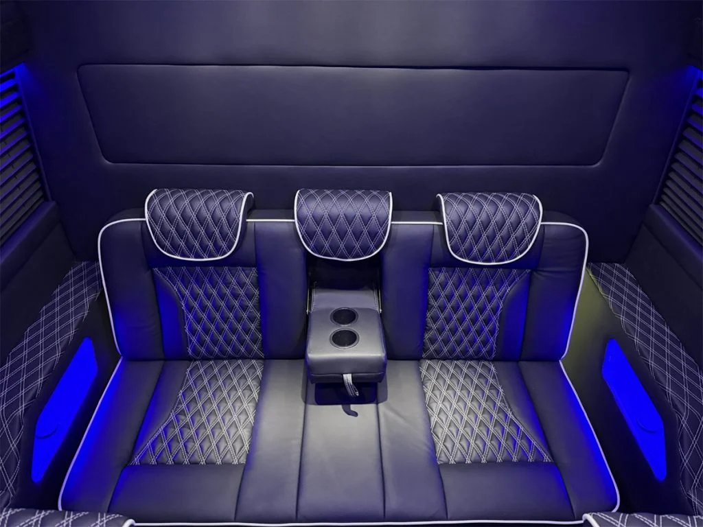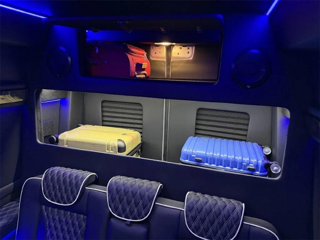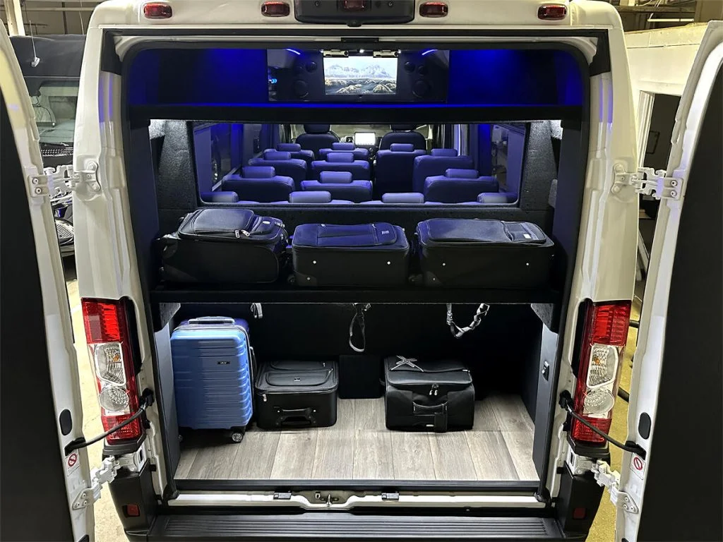 When designing a Custom Ram ProMaster Conversion Van, it is important to note the chassis is not as long as the Mercedes-Benz Sprinter Chassis. As a result, there is less space for seating or equipment within the vehicle. Trunk space is also limited. In both the Road Liner 737 and 15 Passenger Executive Shuttle Ram ProMaster Models, the trunk space in smaller than what is provided in the same Mercedes-Benz Sprinter Conversion.