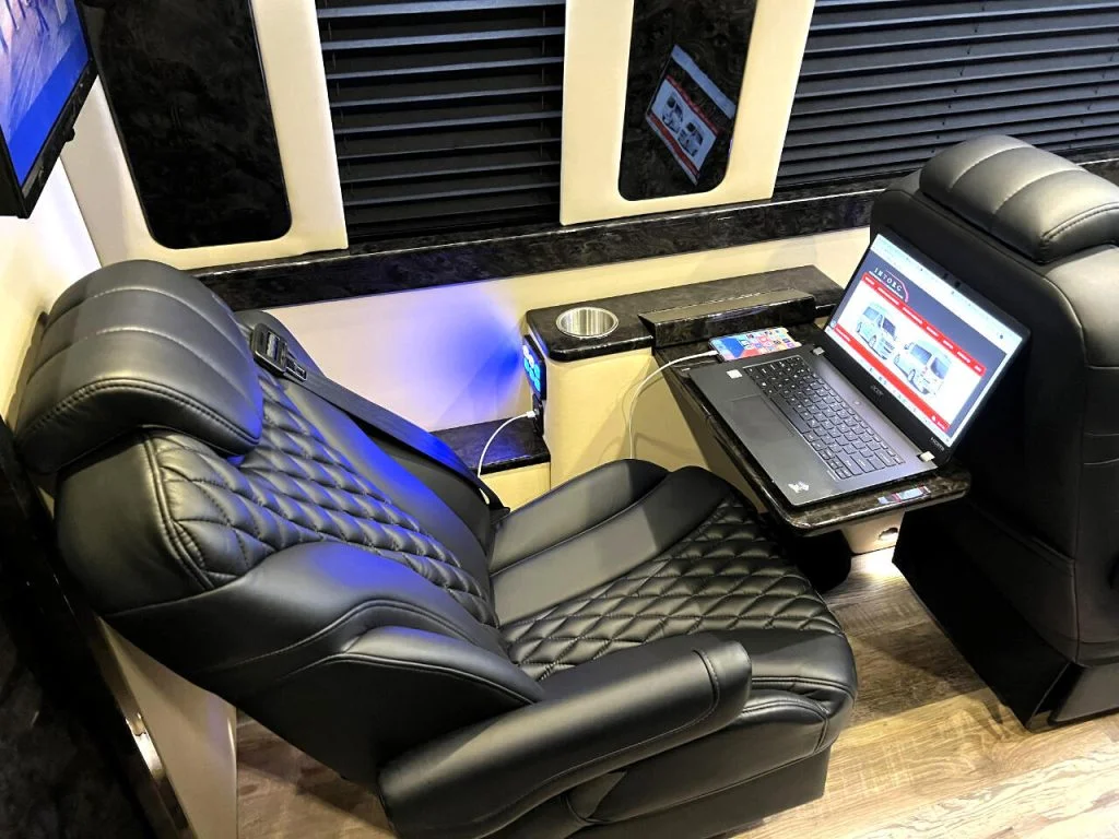Clients use this vehicle to work on the go and transport those who like to live in luxury.