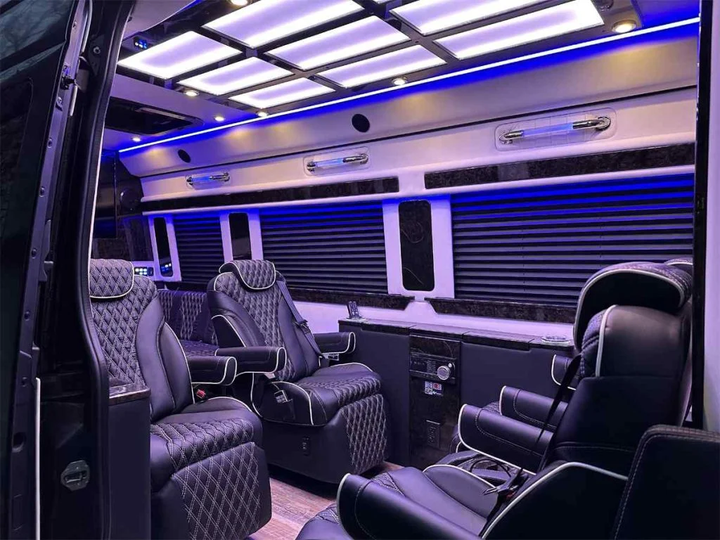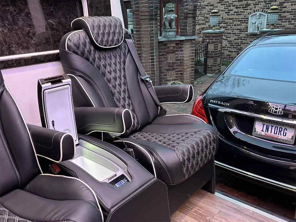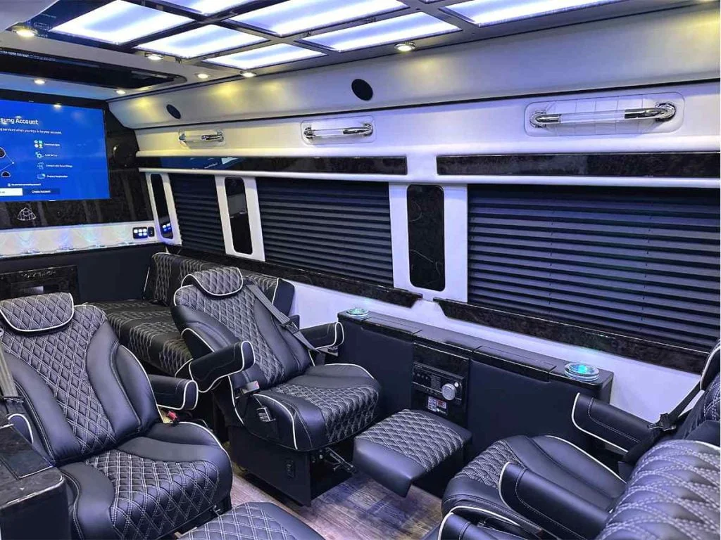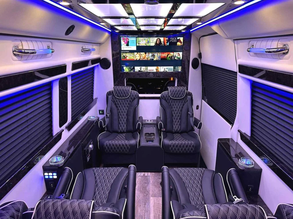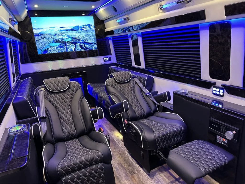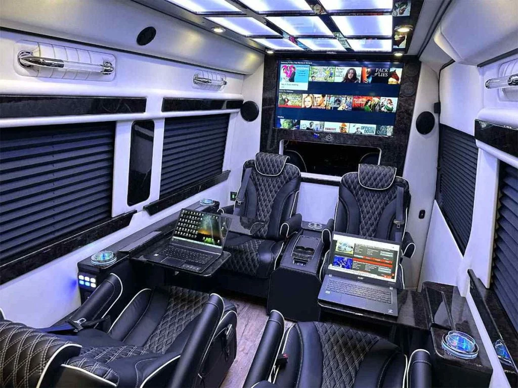 The Road Liner Limousine is unique because its amenities enable both high performance work and ultra luxury entertainment.